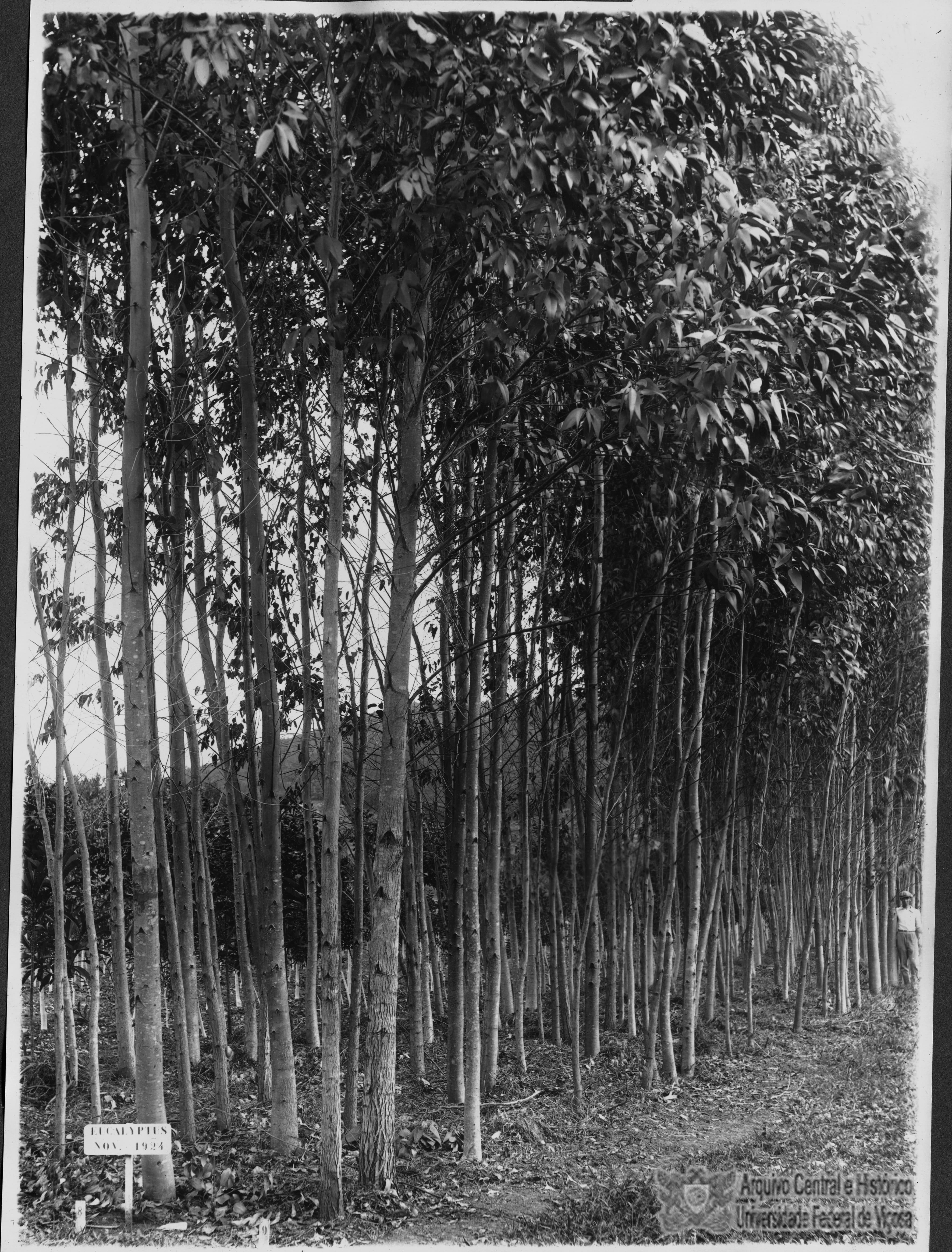 Cultura do eucalipto (árvore muito utilizada para a fabricação de papel, na construção civil etc.).
