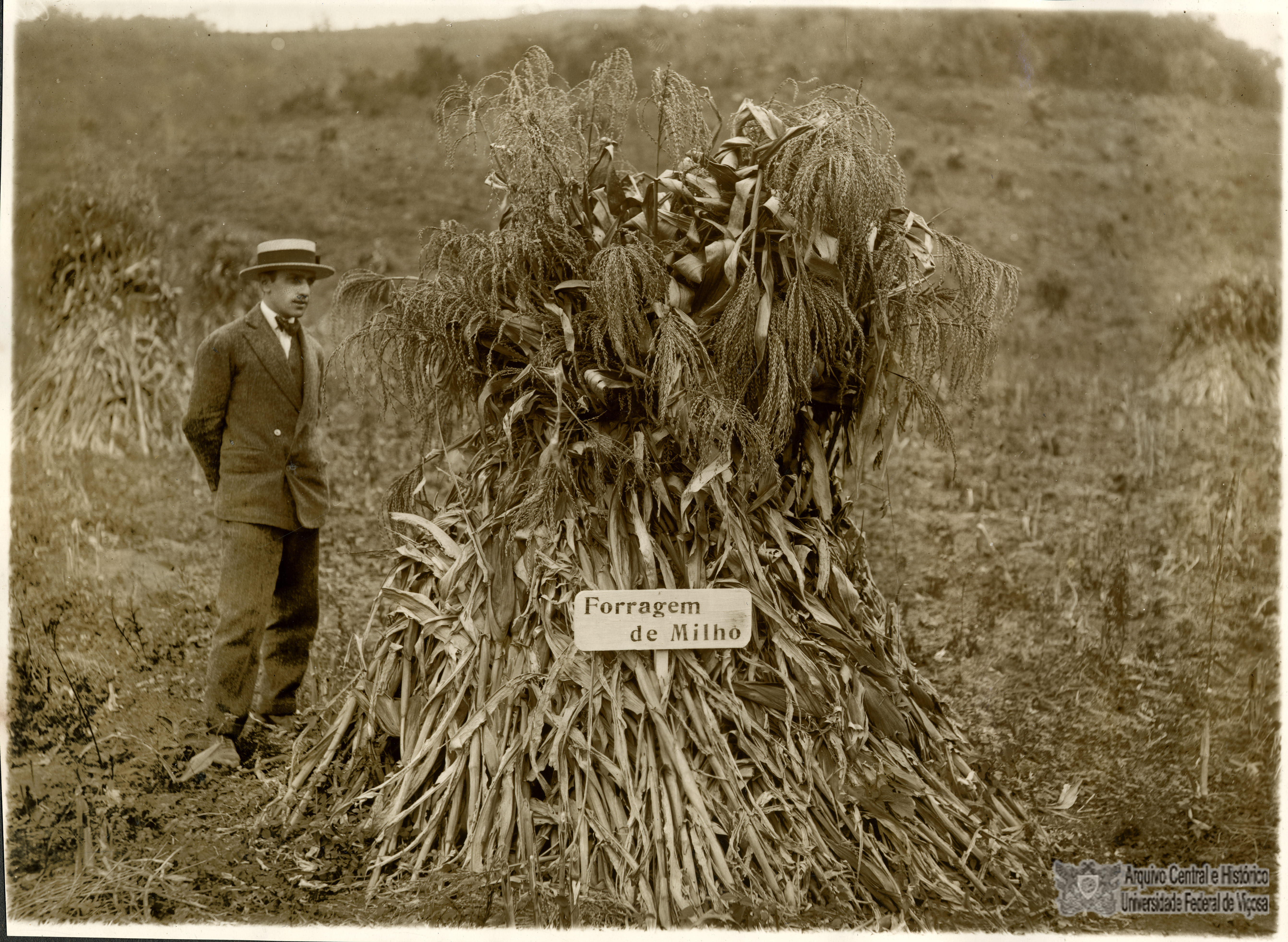 Bello Lisboa observando forragem de milho ( utilizada na alimentação animal).