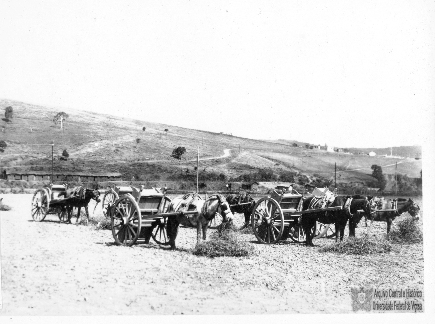 Carroça utilizada em área experimental. Na foto momento de alimentação dos animais.