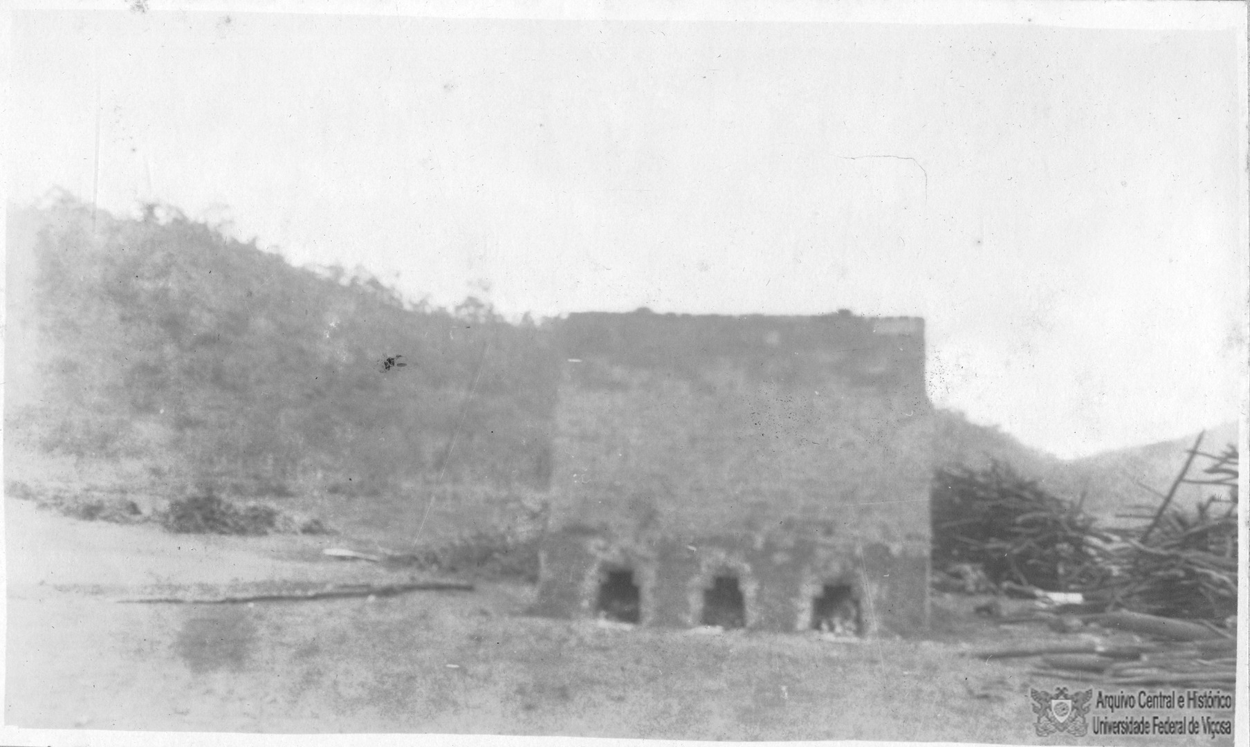 Forno para queima de tijolos. Queimam aproximadamente trinta mil por fornada.